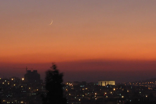 הירח יופיע בתחילה שמאלה משקיעת השמש באזימות °254 ורום °9. בגלל החג והשבת הדיווח